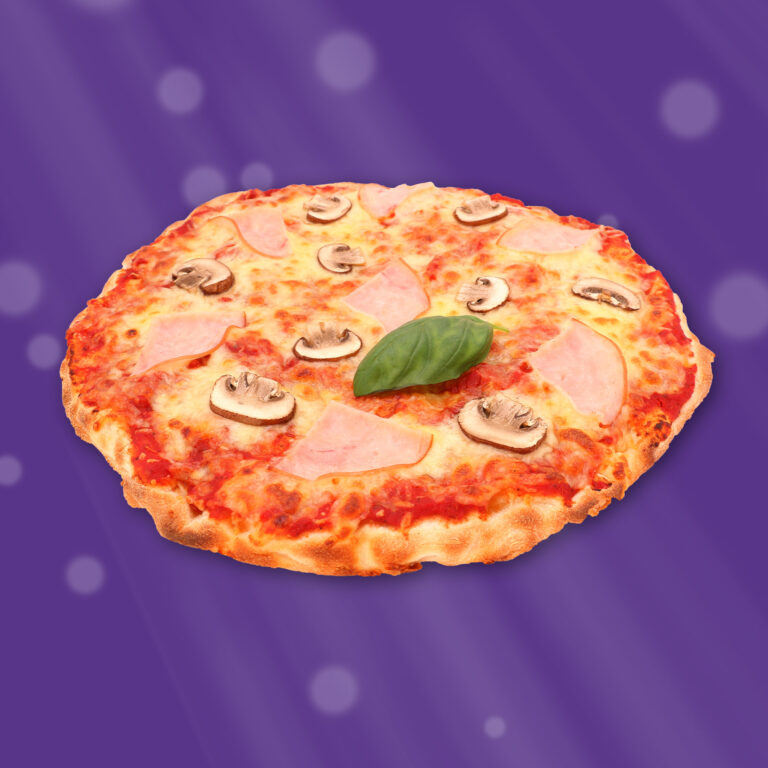 Pizza Originale, Gusto San Marzano Tomaten Sauce, Fior di Latte Mozzarella, Prosciutto di Tacchino, Champignons
