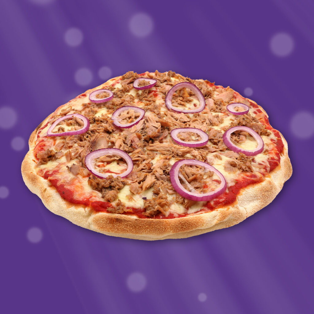 Pizza Originale, Gusto San Marzano Tomaten Sauce, Fior di Latte Mozzarella, Thunfisch, rote Zwiebeln