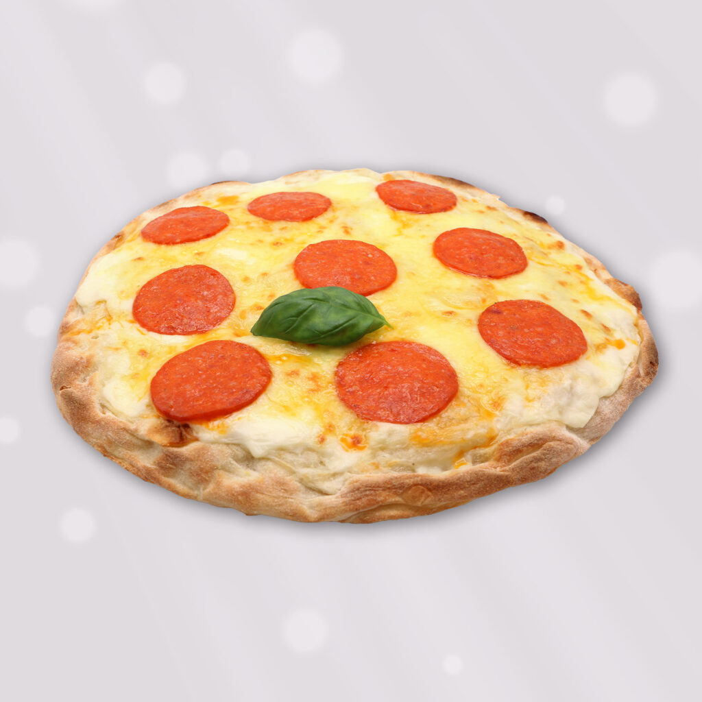 Pizza Bianca, Fior di Latte Mozzarella, Diavoletta (scharfe Salami vom Rind)