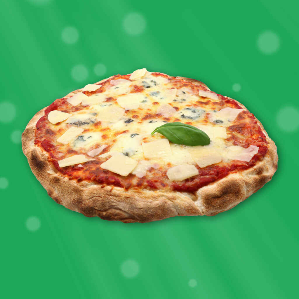 Pizza Originale, Gusto San Marzano Tomaten Sauce , Fior di Latte Mozzarella, Gouda, Gorgonzola, Parmesan
