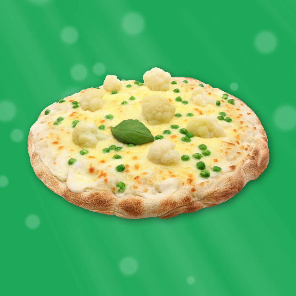 Pizza Bianca, Fior die Latte Mozzarella, Erbsen, Blumenkohl, Parmesan